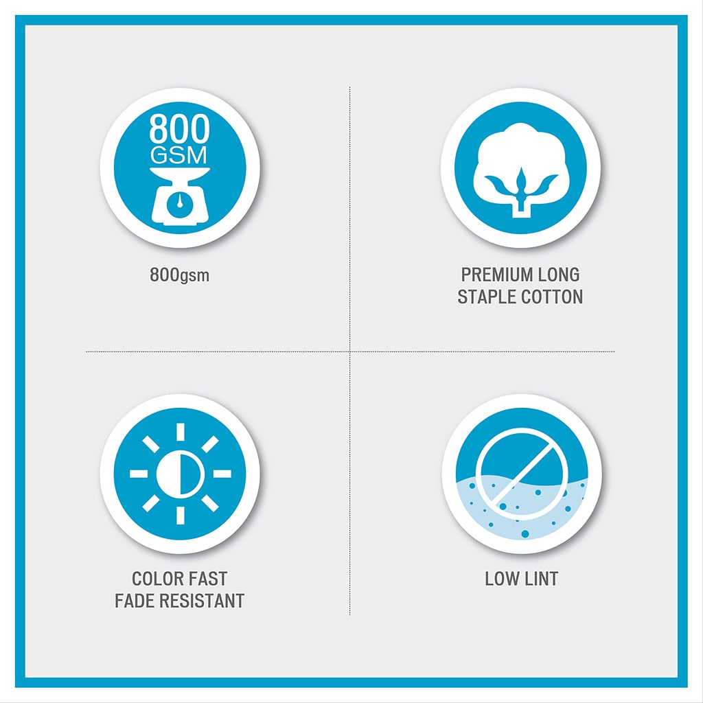 Provide a fresh update to your bathroom with our luxurious Madison Park Signature 800GSM Cotton 2PC Bath Sheet Set. This spa-like quality towel set is made of premium long staple cotton that is highly absorbent and creates a luxuriously soft feel, while the double ply loop construction increases thickness, absorbency, and ensures less lint. Each towel is finished with a SILVADUR™ antimicrobial treatment providing built in freshness protection, inhibiting growth of odor causing bacteria, and keeping linen newer, longer. Active for multiple washes, this treatment delivers long-lasting durable odor protection performance. In addition, these towels are also Made in Green by OEKO-TEX certified, meaning they do not include any harmful substances or chemicals while also using sustainable processes and socially responsible working conditions, for the best in quality comfort and wellness. Finished with double-stitched side hems for long lasting durability, these towels are available in a variety of colors; to easily match your decor with a complimenting color or mix and match to create a distinctive style. Set includes: 2 generously sized 34x68" bath sheets. Coordinate 800 GSM 8PC bath towel set is available and sold separately.