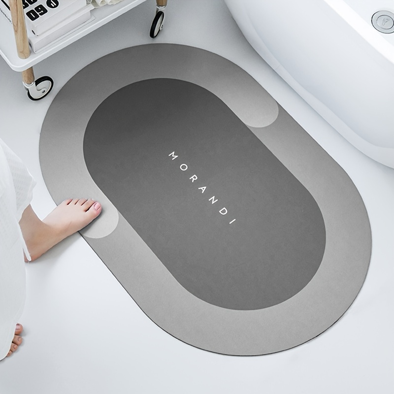 1pc Diatom Mud Oval Classic Floor Mat; Super Absorbent Floor Mat; Quick Dry Bath Mats For Bathroom Floor; Non-Slip Bathroom Rugs; Easy To Clean