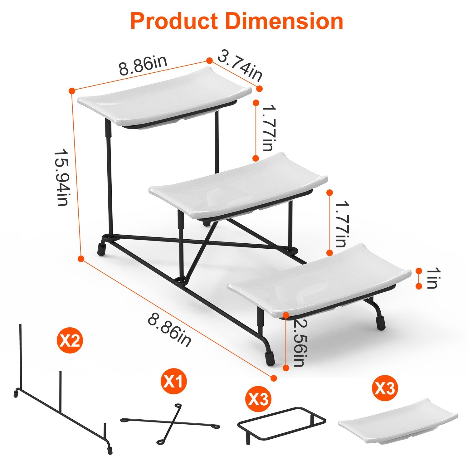 *Show Off Your Delicious Creation*:This food service rack with elegant white outlook,3-tier design and flexible angle-adjustable function after removing the X-shaped support bracket, can gracefully present meats and cheeses, breads, veggies at different heights and angle and fits nicely as a fruit stand, cupcake tray or cupcake stand, insuring that your guests easily access to their selection of treat.