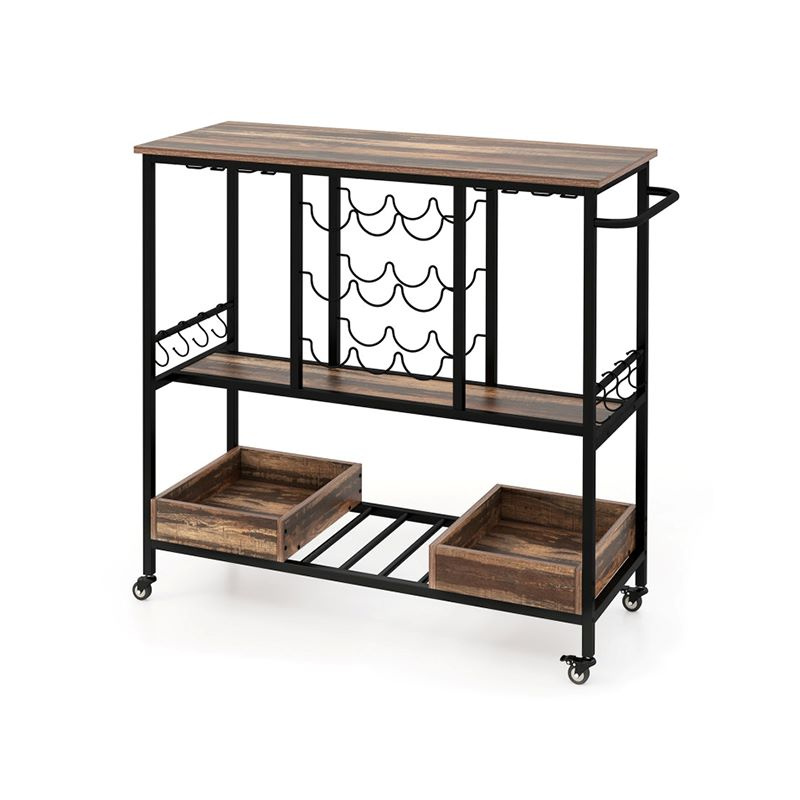 This 3-tier liquor cart marries beauty and function, boasting a charming and rustic appearance.