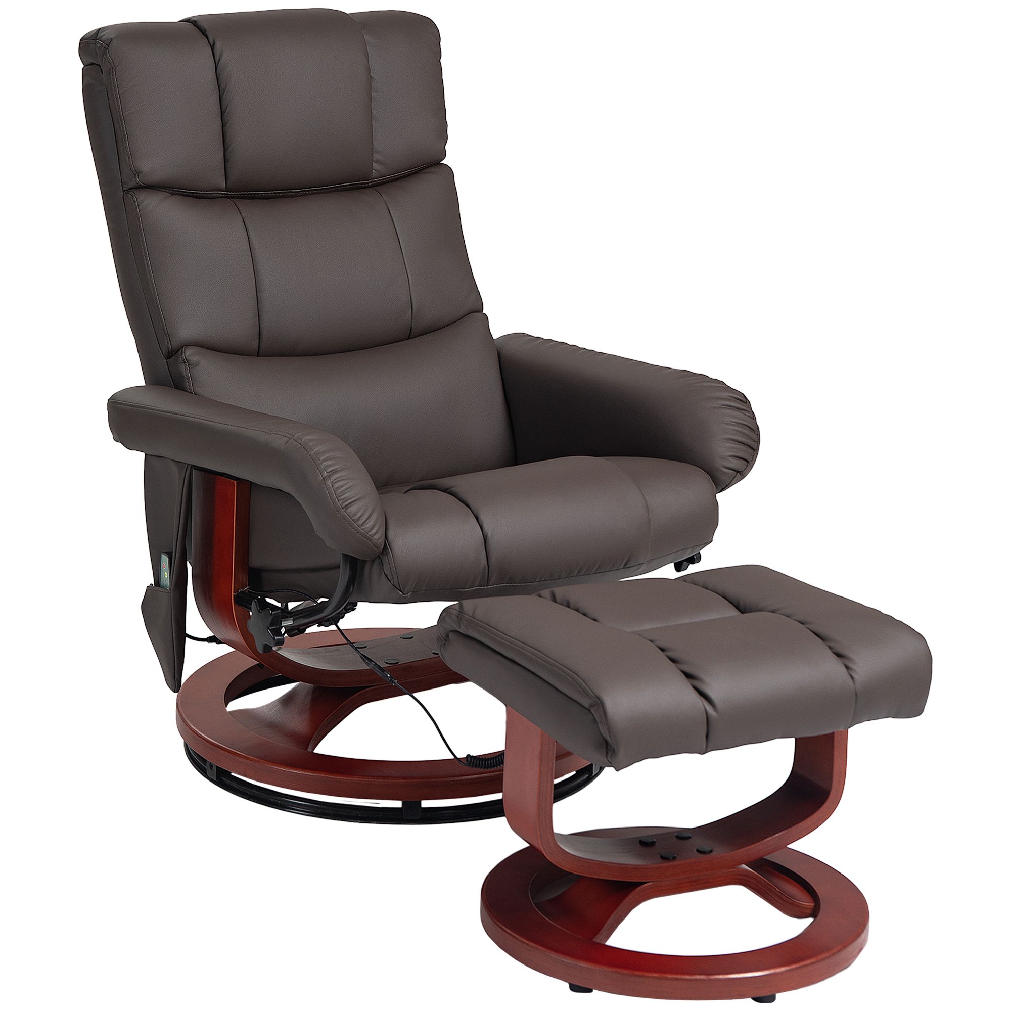 HOMCOM Brown Faux Leather Swivel Massage Recliner & Ottoman with Remote for Ultimate Relaxation | Home Comfort