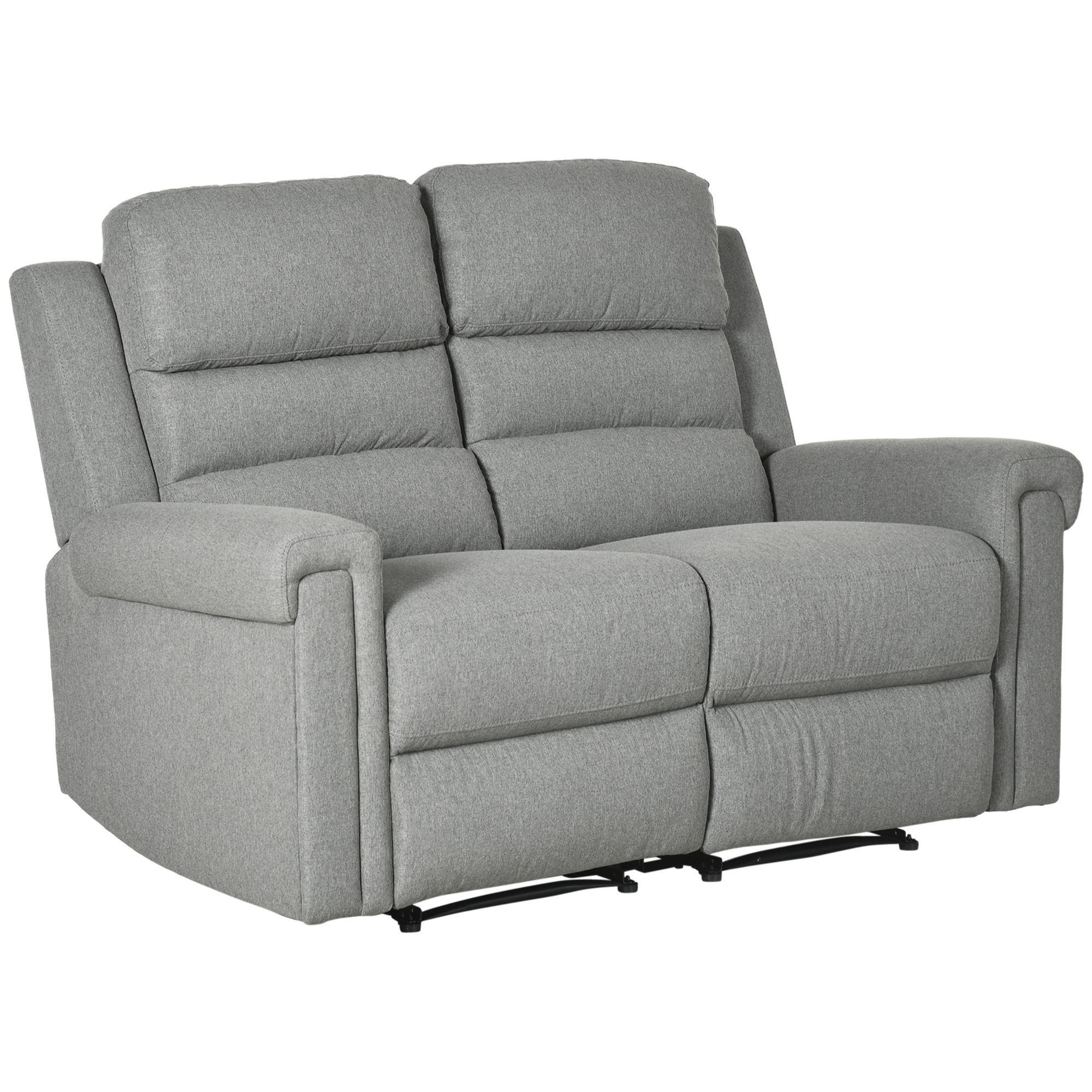 HOMCOM Modern 2 Seater Manual Reclining Sofa Loveseat Couch with Linen Fabric and Thick Sponge Padding for Living Room, Grey