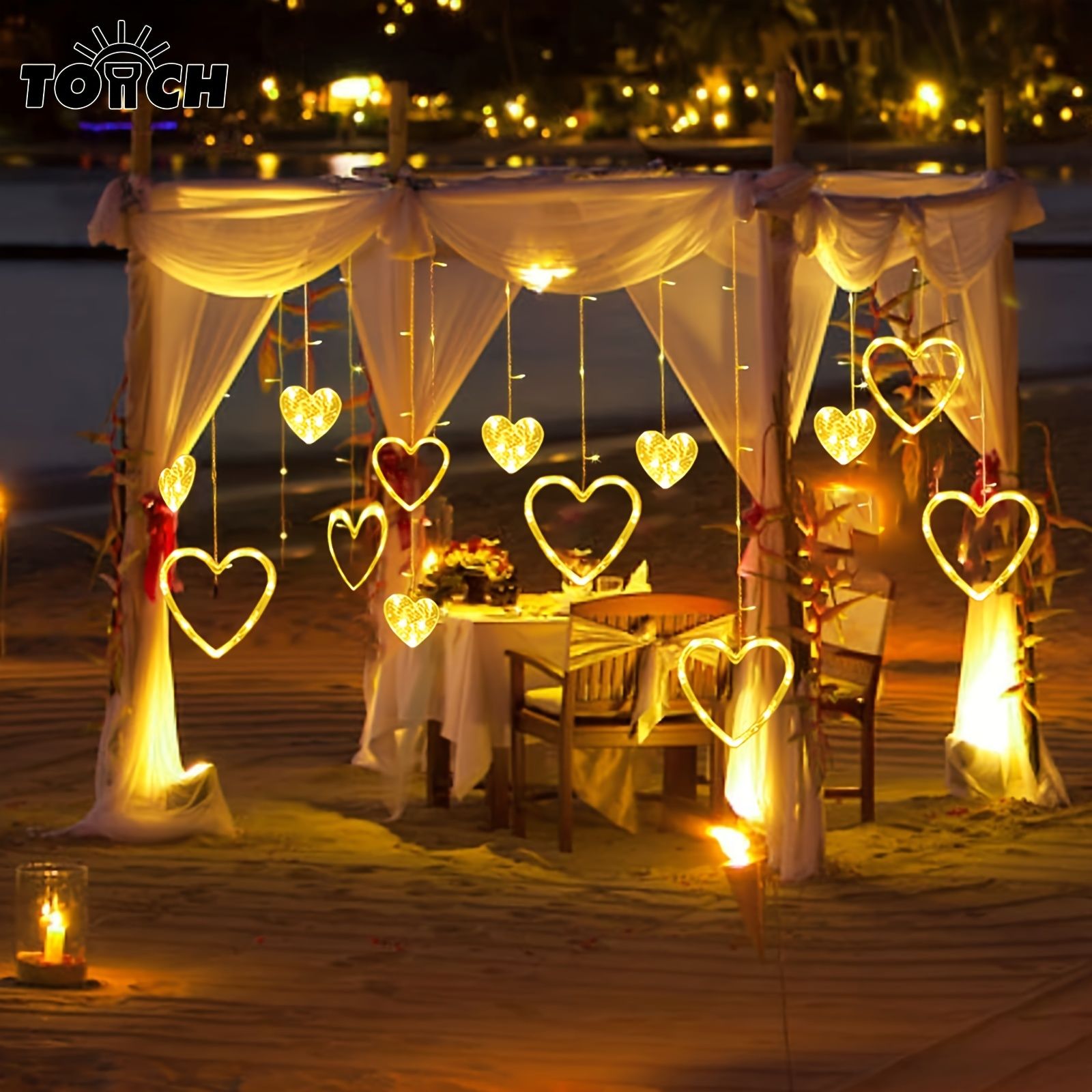 LED Curtain String Lights; 138 LED String Light Battery & USB Powered Waterproof Heart Shape Lights; 8 Flashing Modes For Girl Valentine's Day Wedding