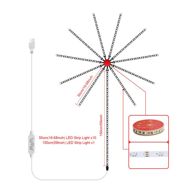 -The product includes 10 19.68inch light strings and 1 59inhc light string;  which supports 24-key infrared remote control;  allowing you to enjoy the fun of color changing in bedroom;  kitchen;  living room;  bar and party decoration. You can adjust brightness and lighting modes according to different atmospheres