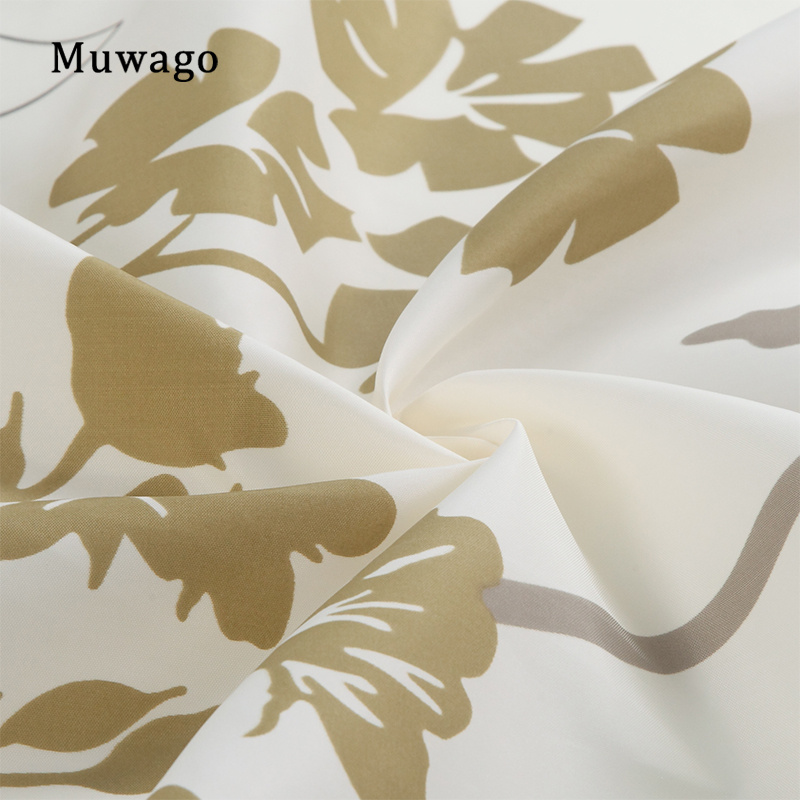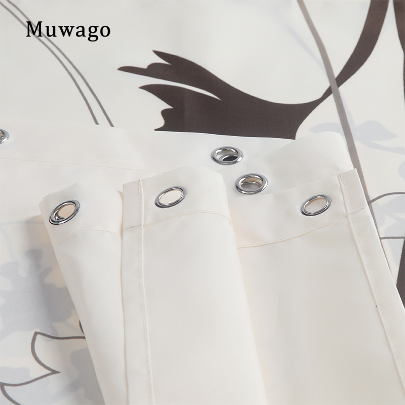 Muwago Silhouette Flower Shower Curtains Polyester Fabric Plants Brown Beige Leaves Waterproof Mildew Floral Bathroom Curtains