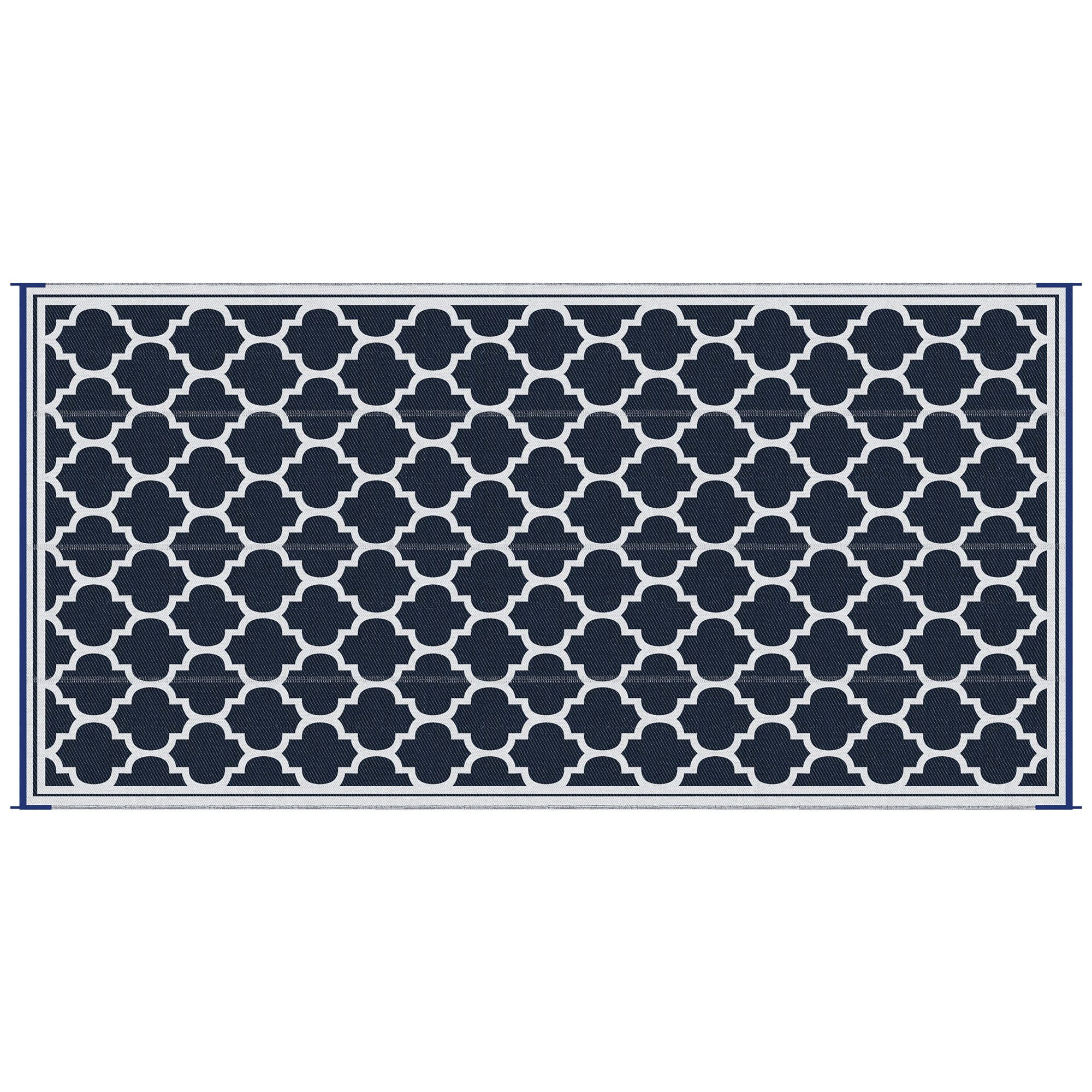 Camp out on the carpet with Outsunny. This waterproof carpet is a reversible outdoor rug designed to handle dirt. Outdoor-ready, this outdoor rug cleans up fast; sweep it, spray it, wipe it, or wave it; its powerful plastic fibers stay dry and don't saturate. Keep our rug in the camper, RV, or car. It's excellent for camping, beach barbecues, patio picnics, or anywhere you need it outside. The color is reversible, meaning you get two rug patterns in one package. Get out, get comfy, get Outsunny.