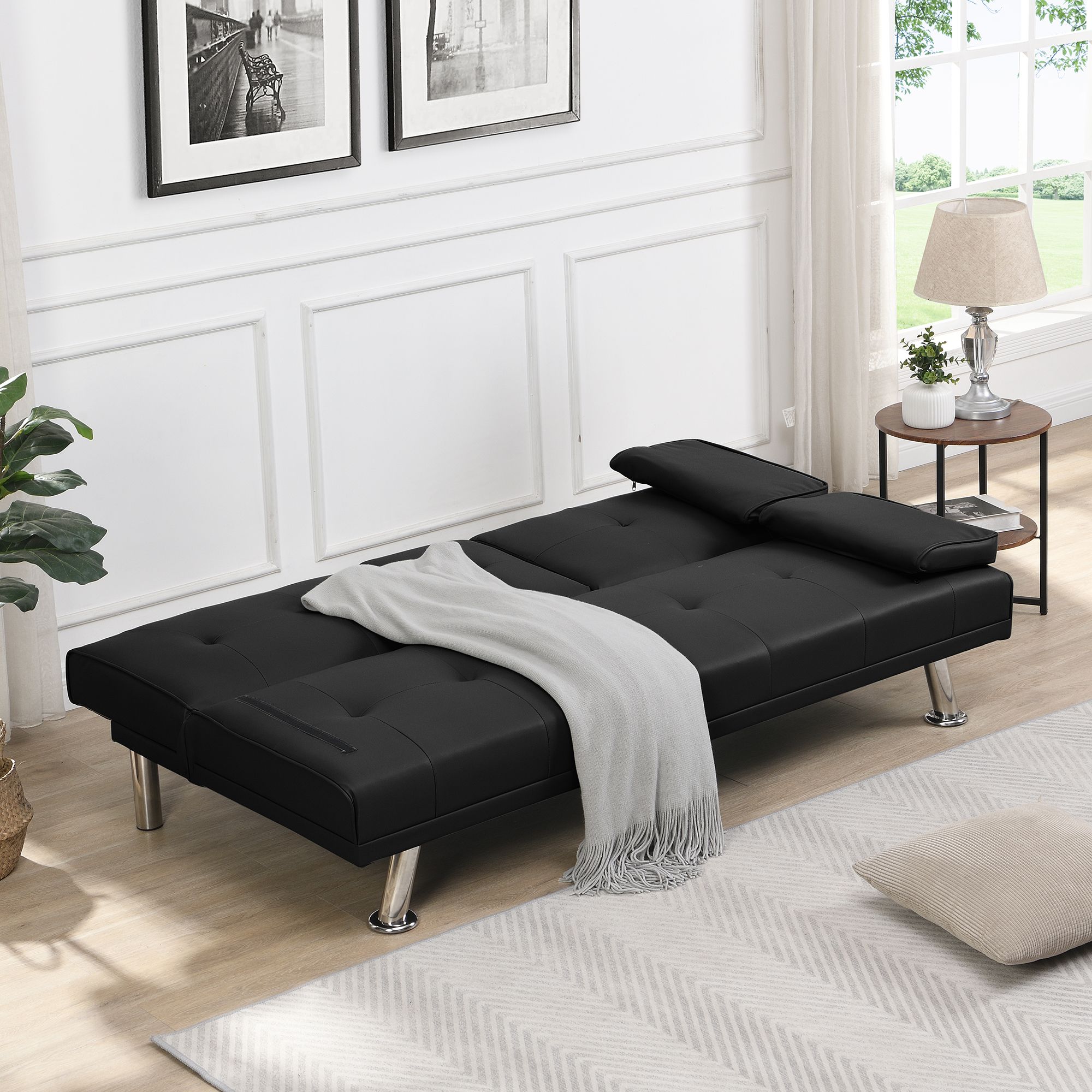 sofa bed with Armrest two holders WOOD FRAME, STAINLESS LEG, FUTON SOFA PVC