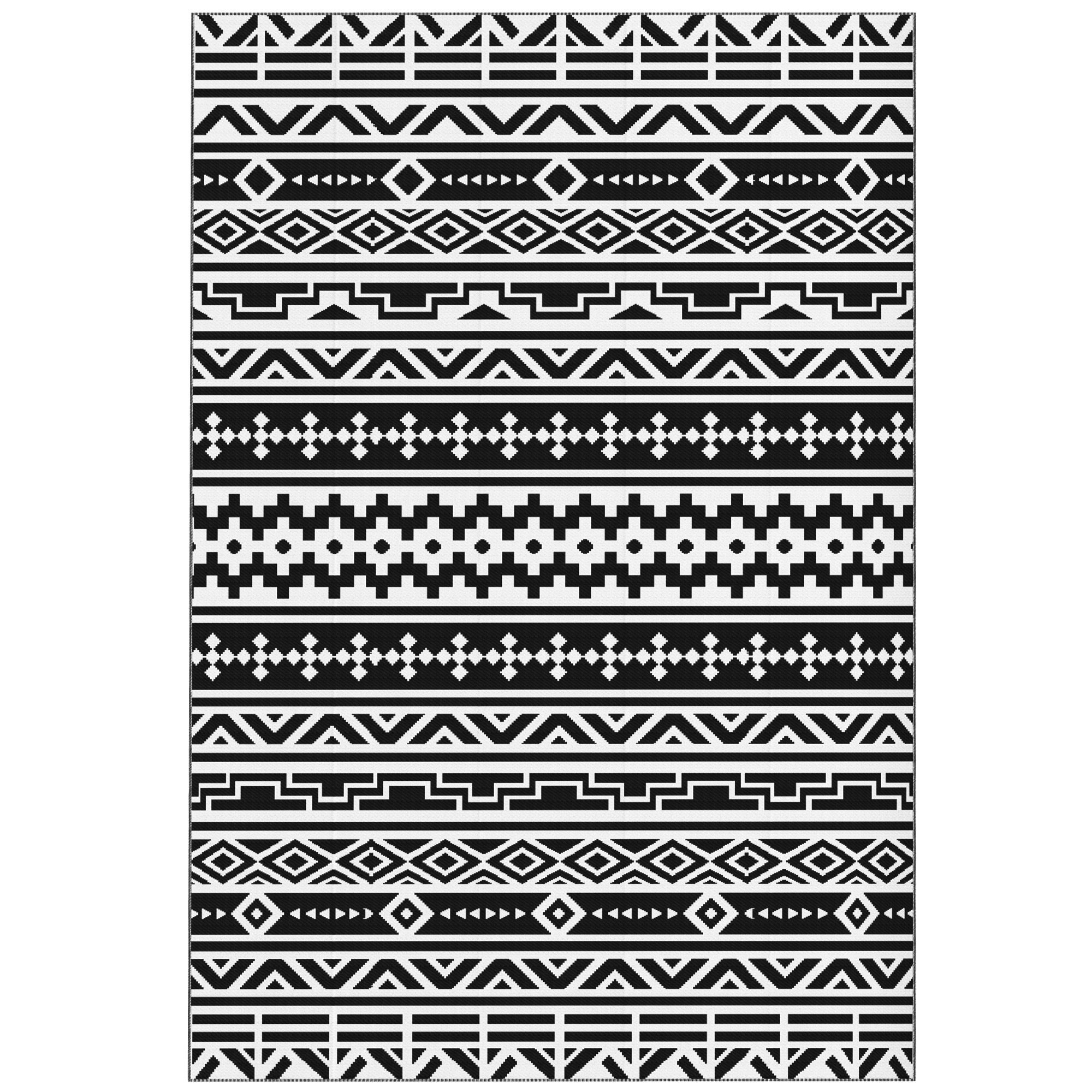 Outsunny Reversible Outdoor Rug, Waterproof Plastic Straw with Carry Bag, 6' x 9', Black & White Geometric Wall